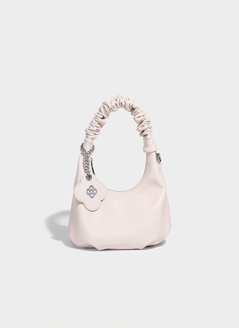 自分のバッグがちょっと寂しかったので、サイトで見かけてつい一緒にポチりました!編み込みデザインのバッグと相性ばっちりで、付けるだけで一気に雰囲気が変わります。気分が上がる〜🎀