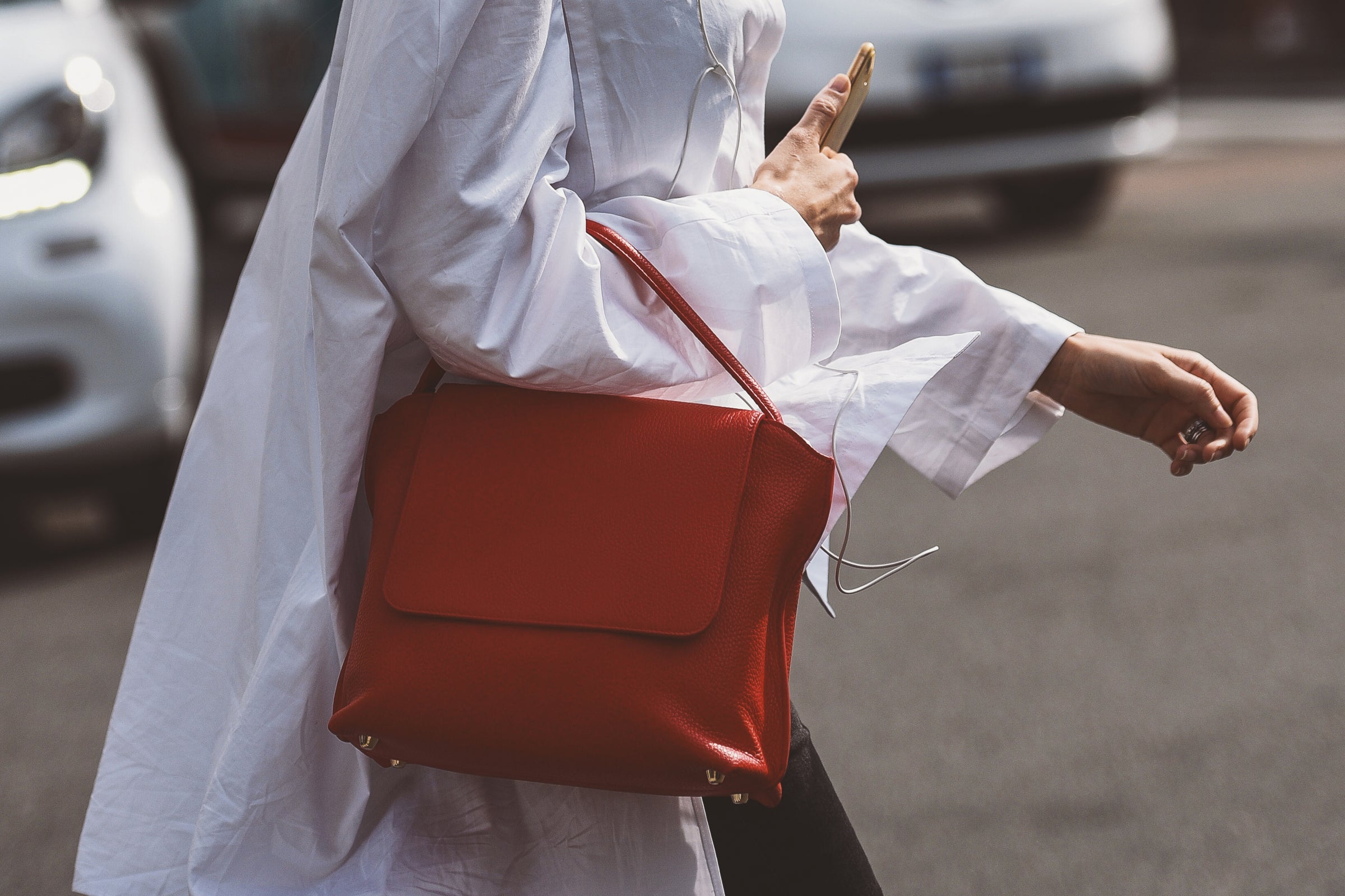 バッグに取り入れるなら、構造が美しいレザートートや、直線的なフォルムのショルダーバッグがおすすめです。