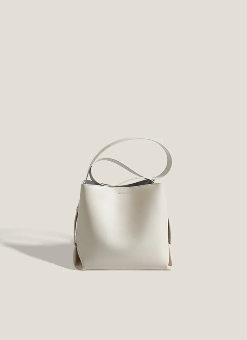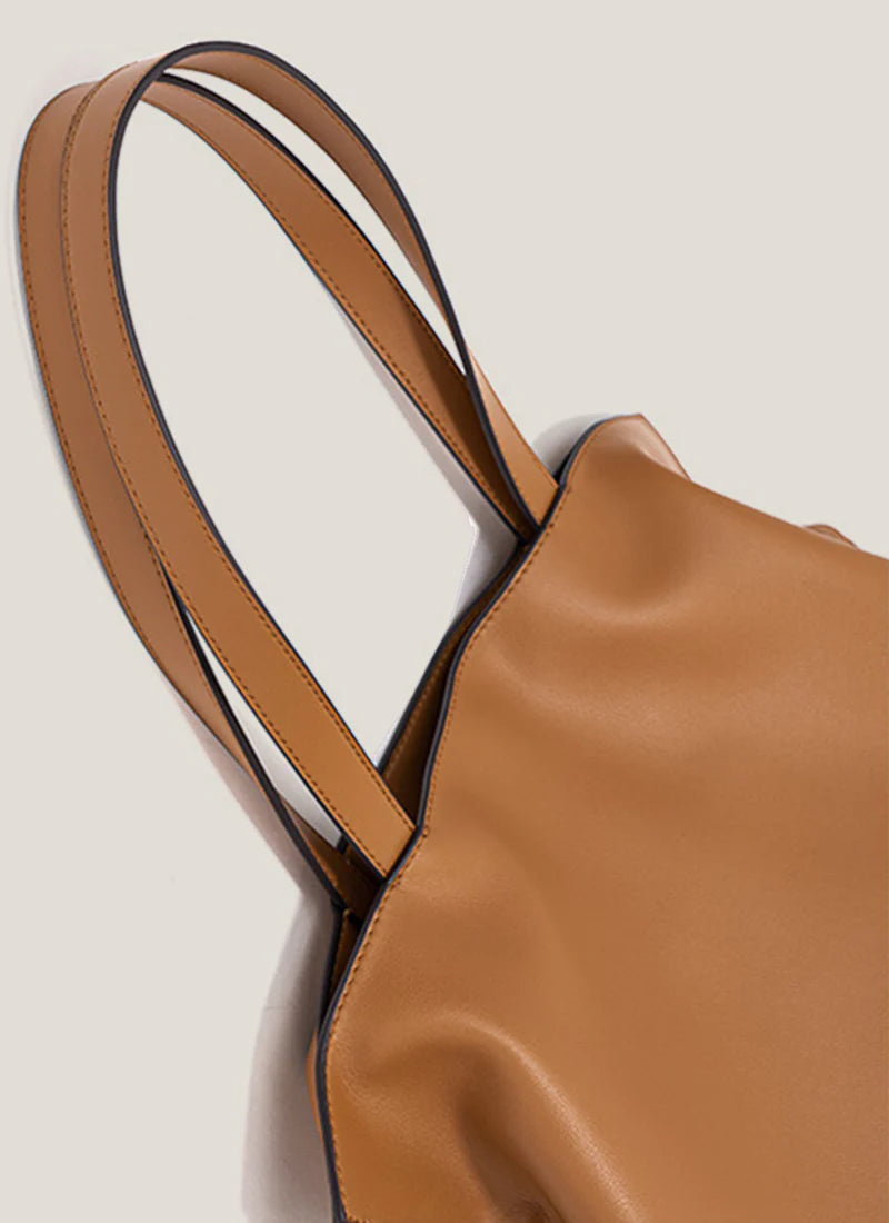 ふんわりとしたギャザーとサイドのノットデザインが織りなす、モダンで柔らかな表情が特徴です。大容量 でありながらも驚くほど軽く、荷物が多い日でもスタイリッシュさを崩さない設計が秀逸です。