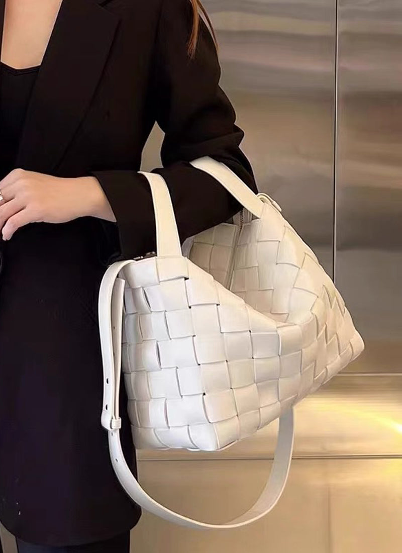 ISOLE公式|ホワイト色の太め牛革編み込み3WAYショルダーバッグ