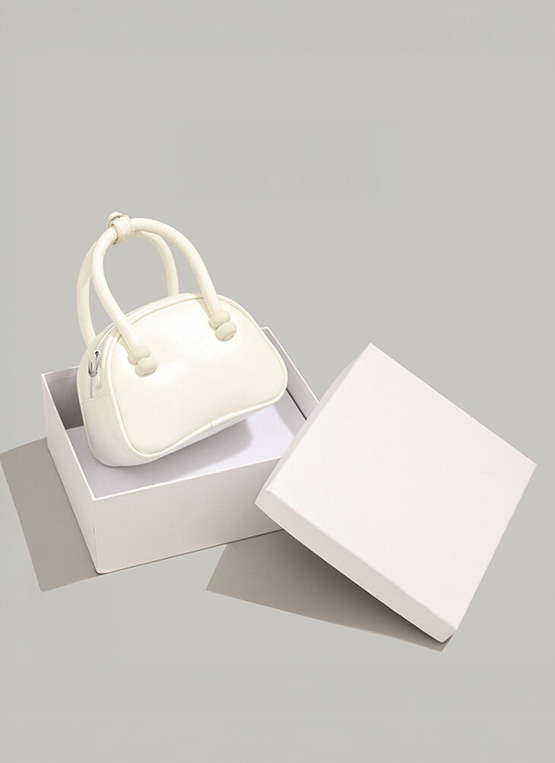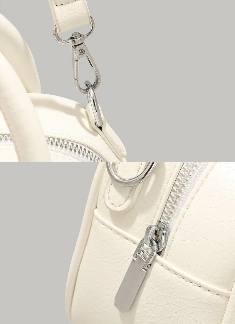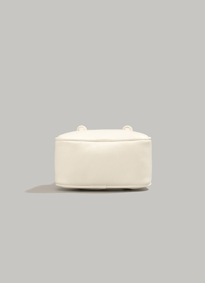 ニュアンスホワイトのやわらかなPU素材が軽やかでクリーンなムードをまとわせる。