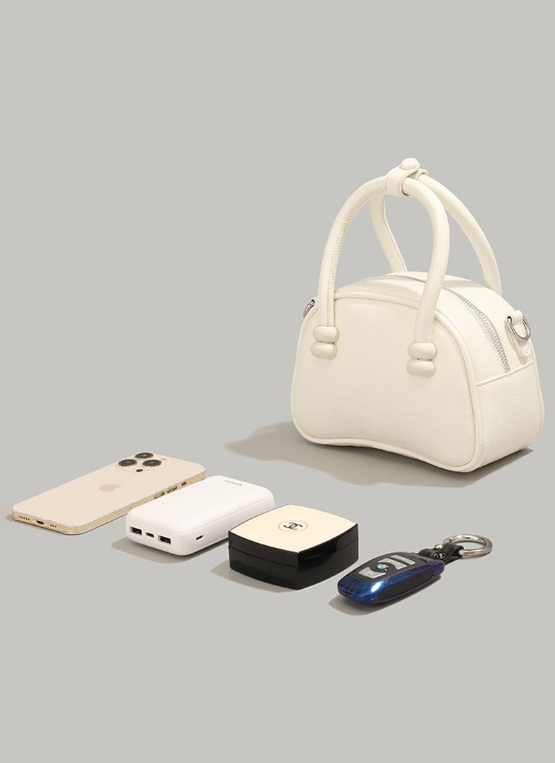 ころんとした丸みのあるフォルムが手元にふわりと愛らしさを灯すショルダーバッグ。