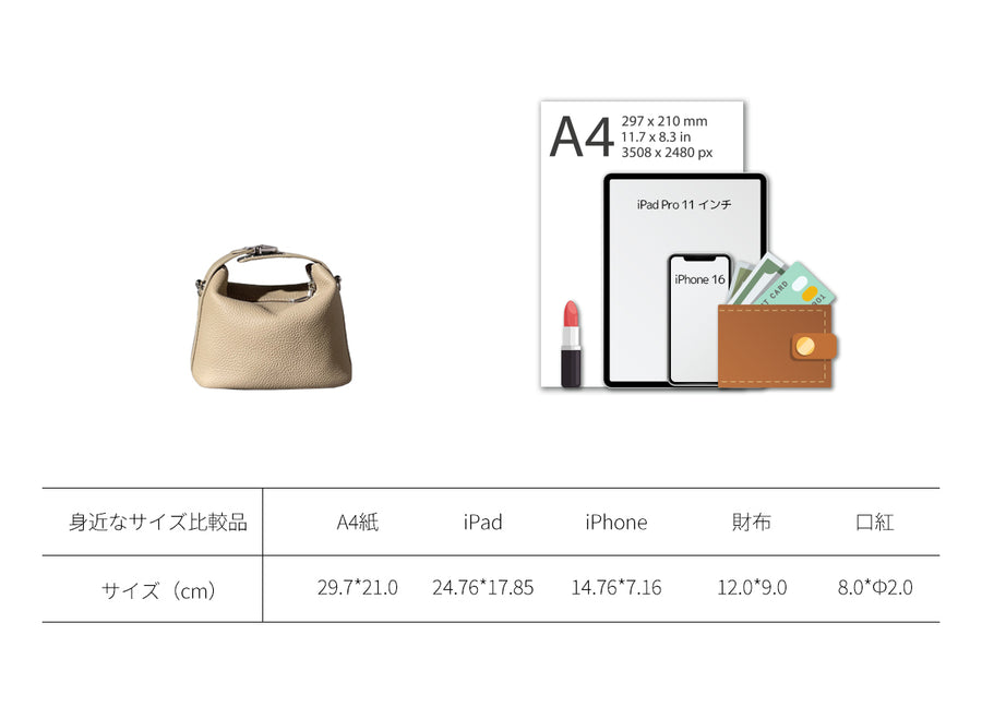 スマホ、リップ、パスポートが収納でき、貴重品だけを持った身軽なお出かけやご旅行にも最適です。