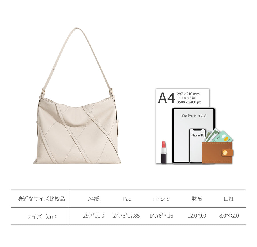 調整可能なショルダーストラップにより、様々なスタイルで持ち運びが可能です。