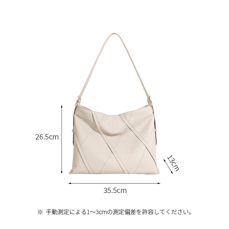 このショルダーバッグは、洗練されたストライプデザインが特徴で、シンプルながらもエレガントな印象を与えます。