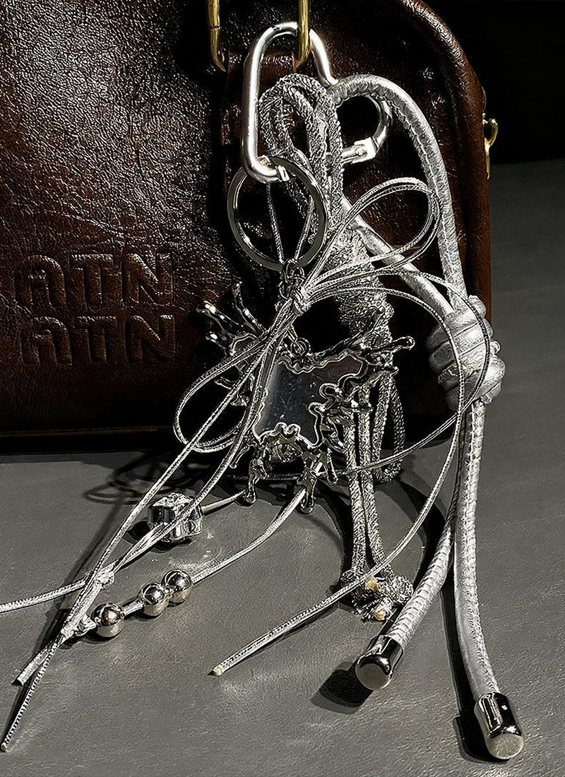 チェーンやビーズのディテールがアクセントとなり、視線を引きつけます。