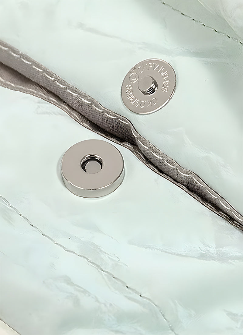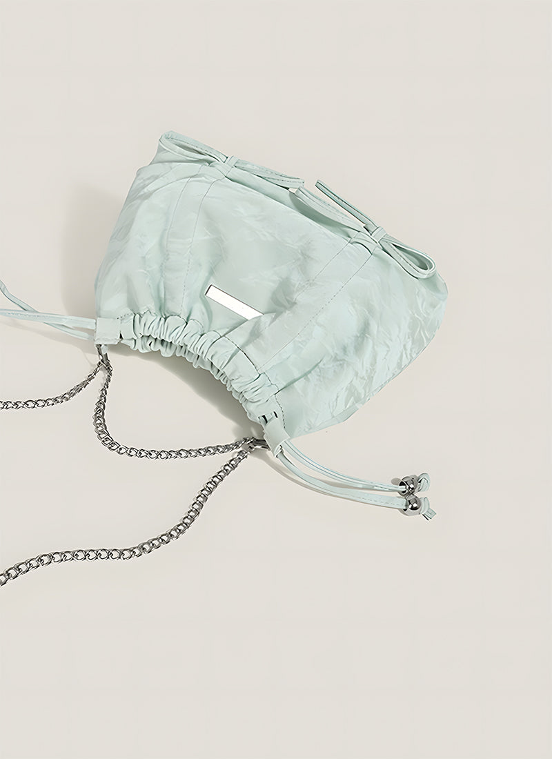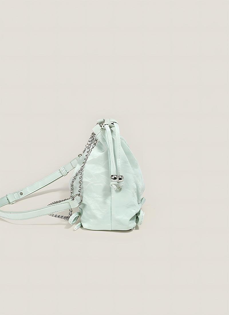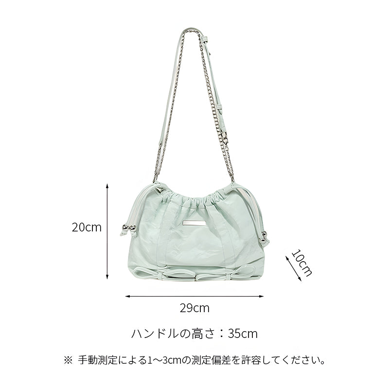 しなやかなPU素材と光沢感のある仕上げが、華やかさを引き立てるバッグ。