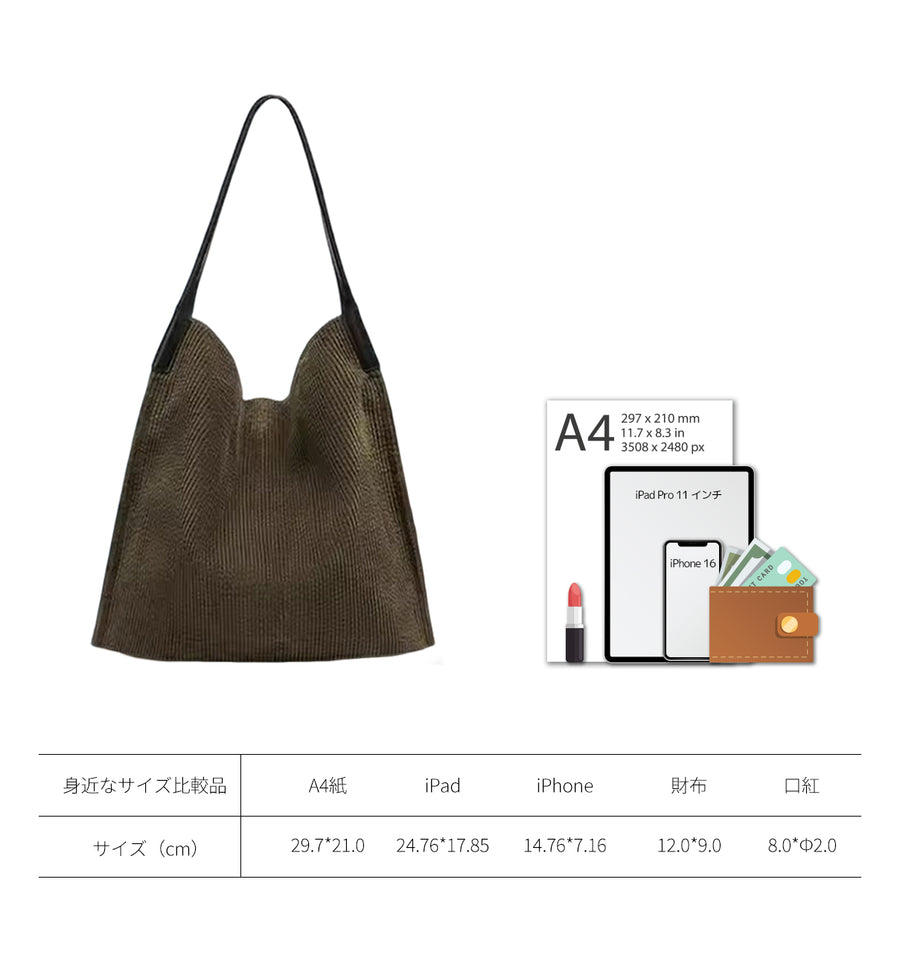 コーデュロイ素材を使用したシンプルでスタイリッシュなトートバッグ。