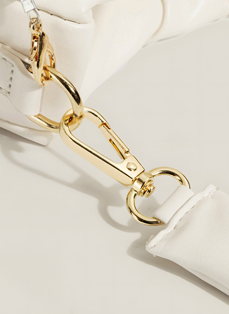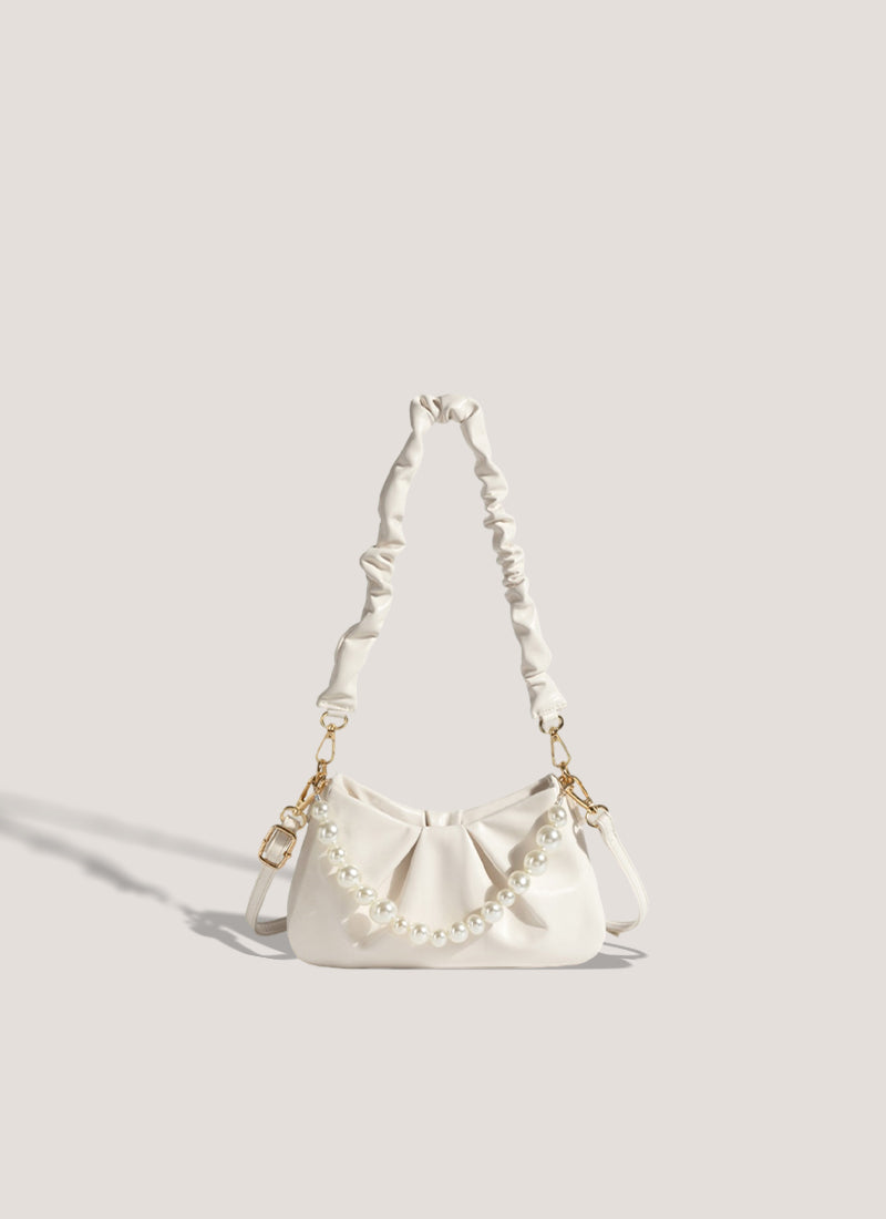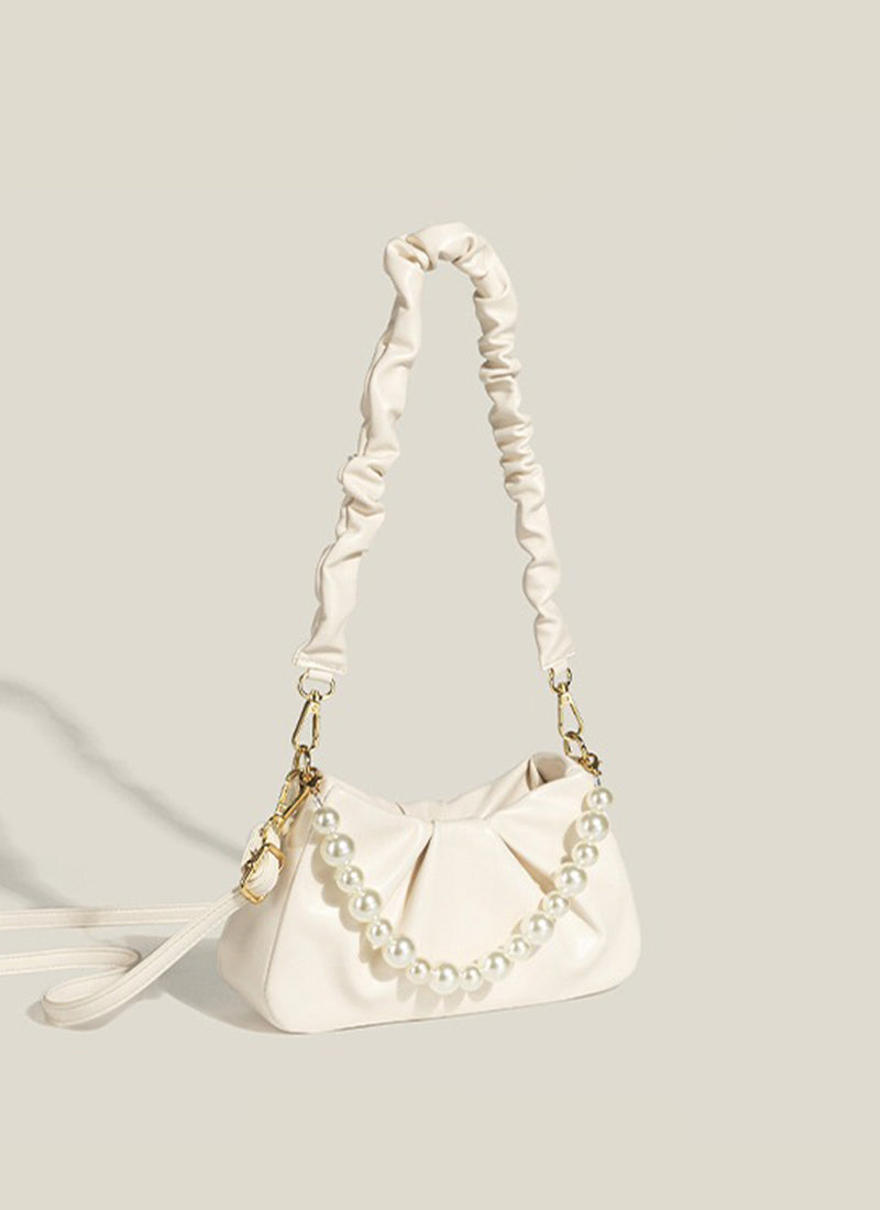 柔らかな雲を思わせる立体的なドレープが印象的で、ふんわりとした存在感をまとったエレガントなショルダーバッグです。