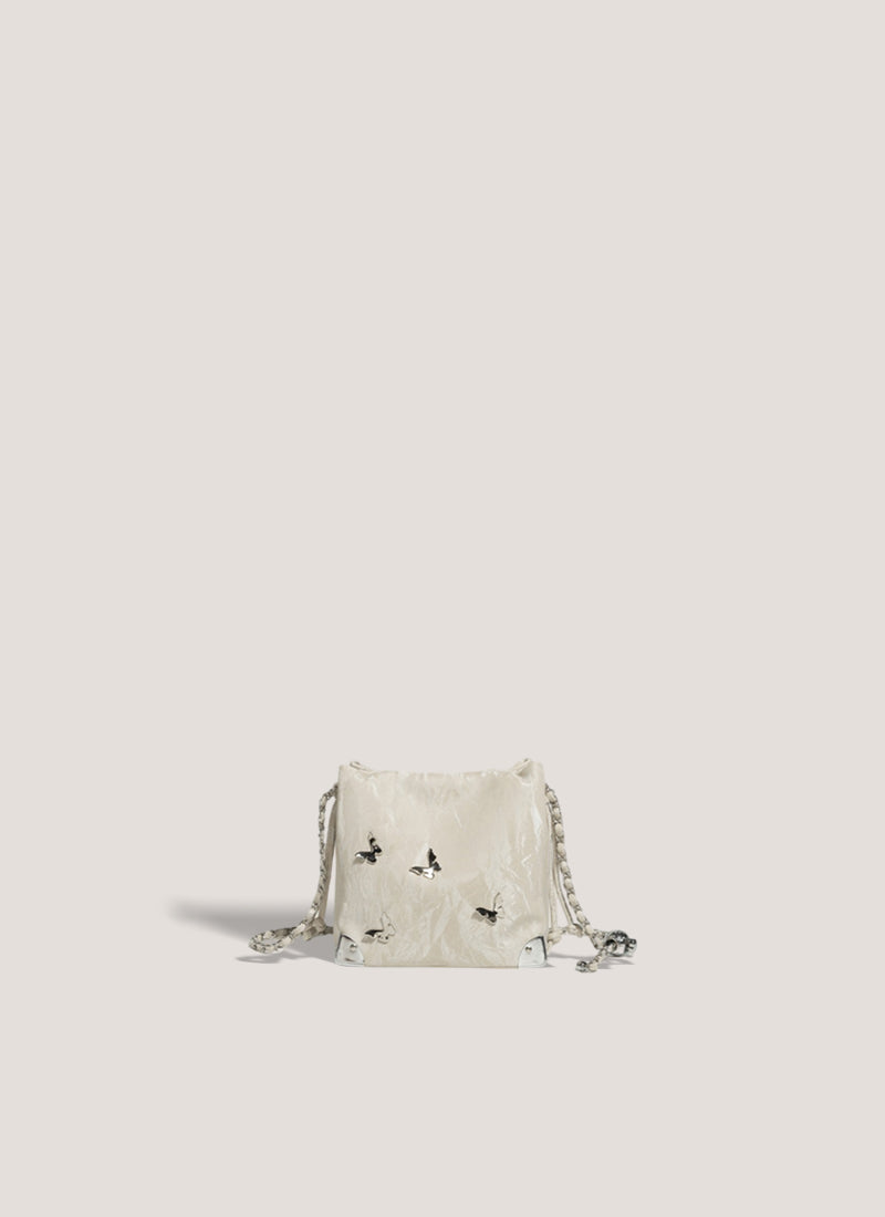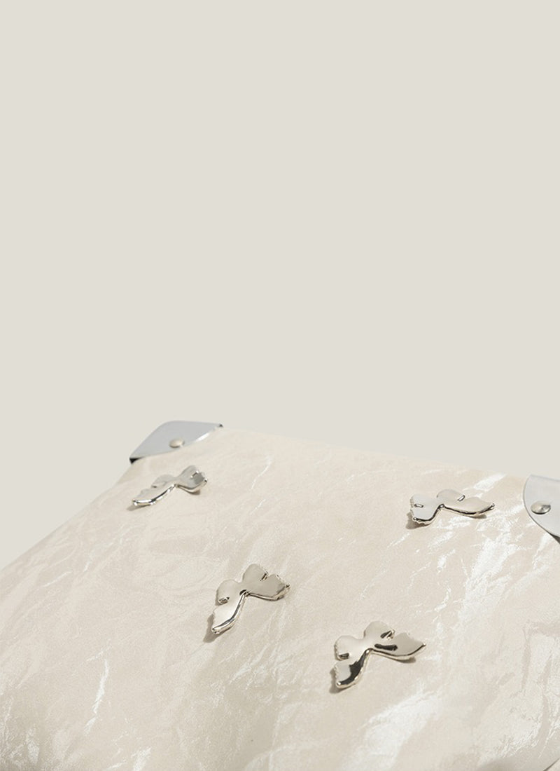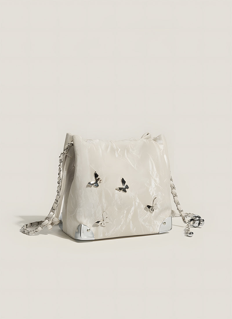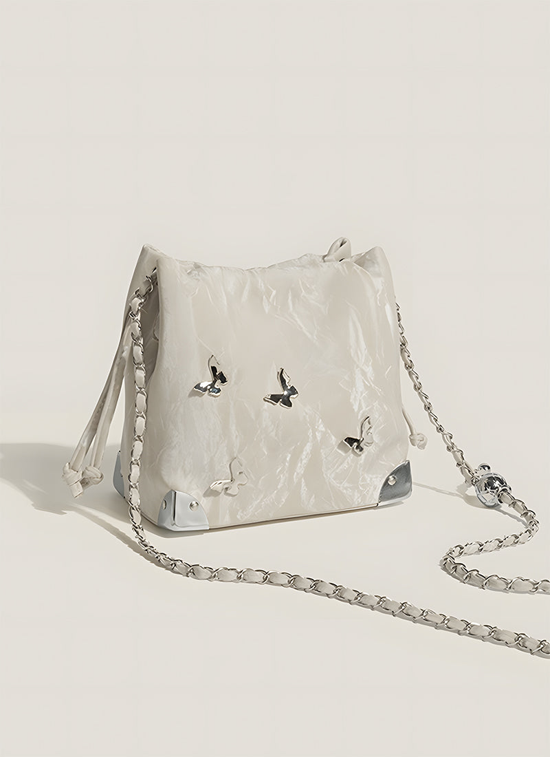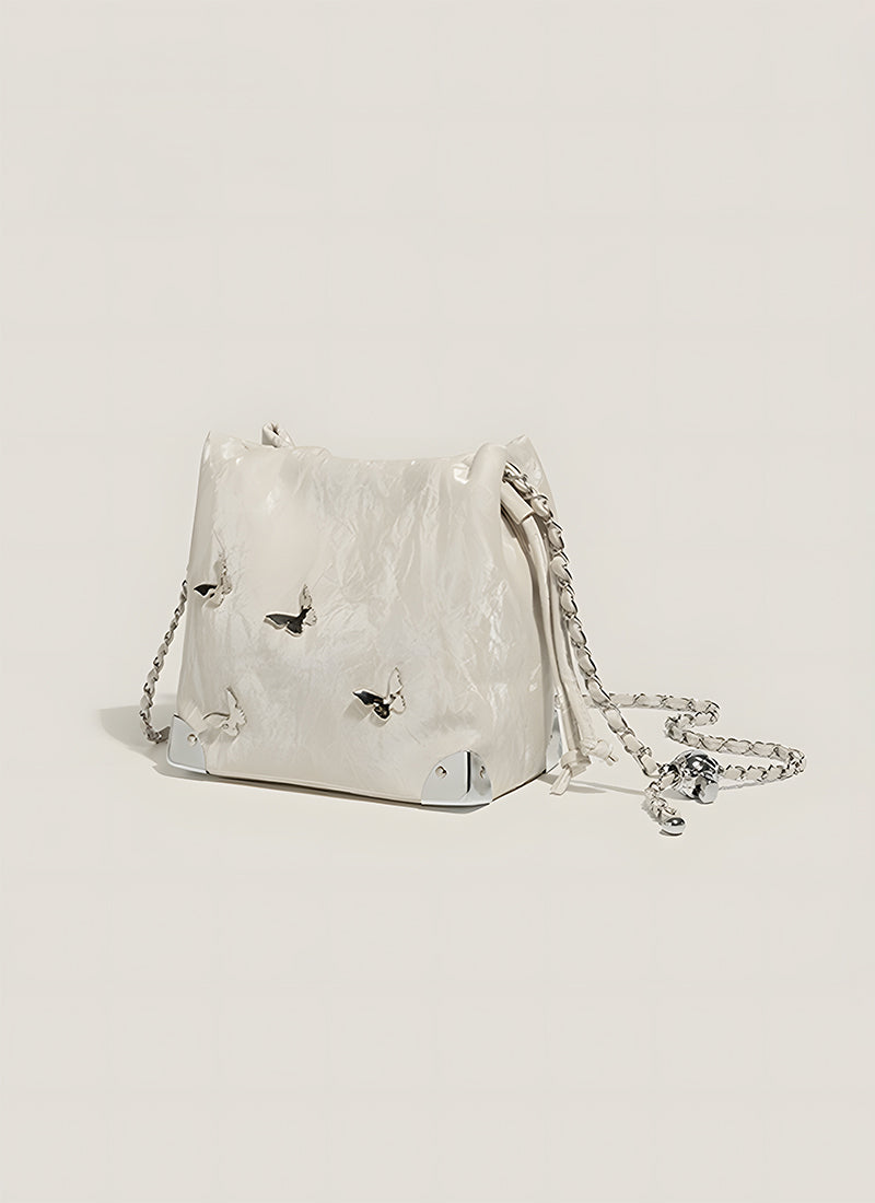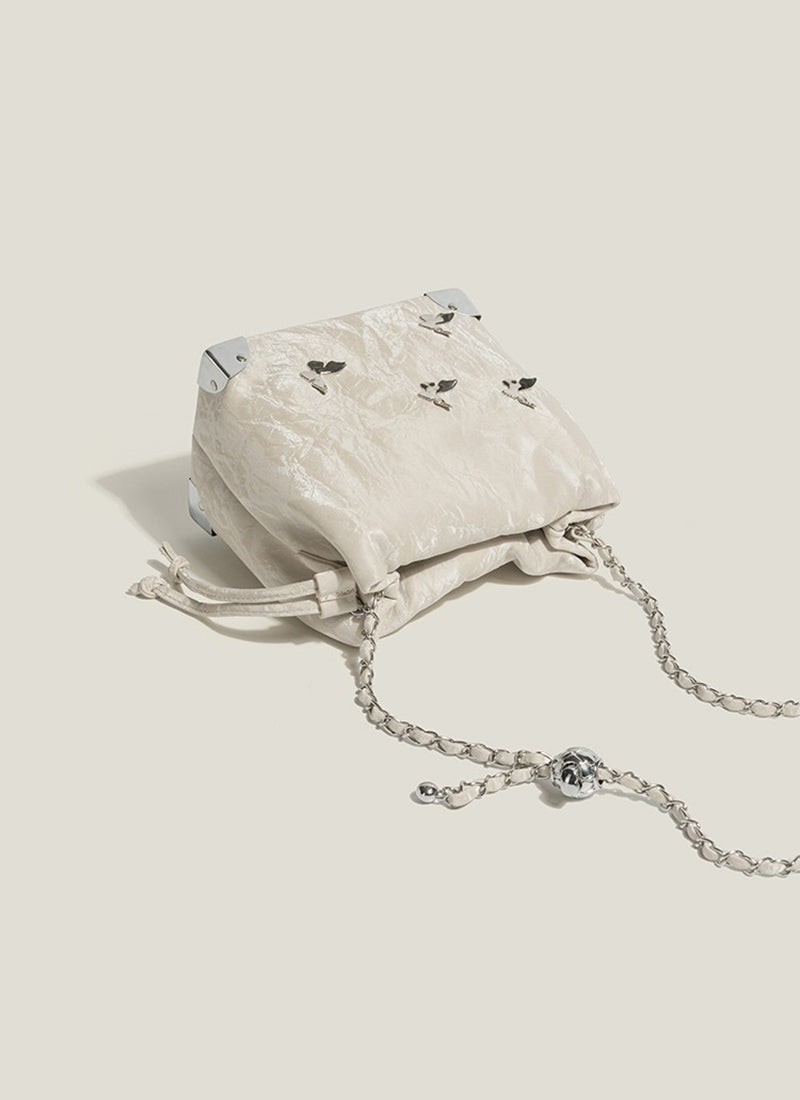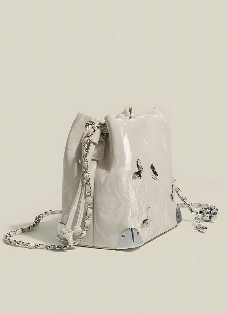 形状の美しさと、金属飾りが際立つことで、バッグ全体に洗練された印象を与え、シンプルながらも存在感を放ちます。