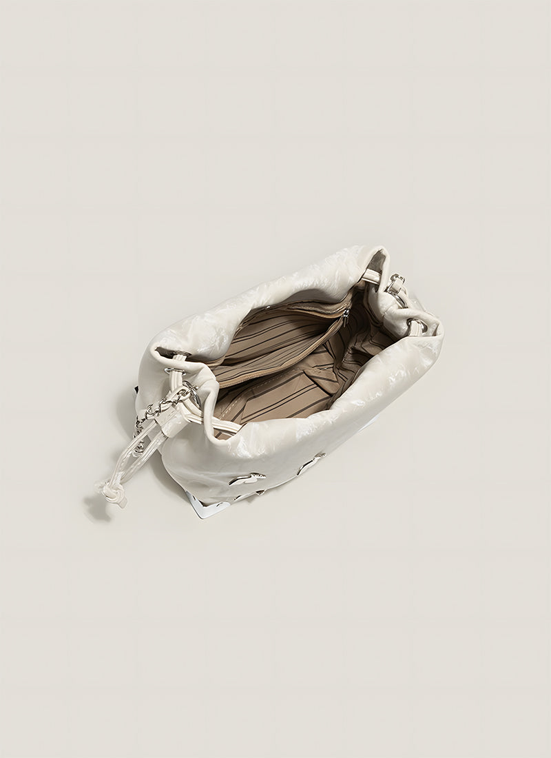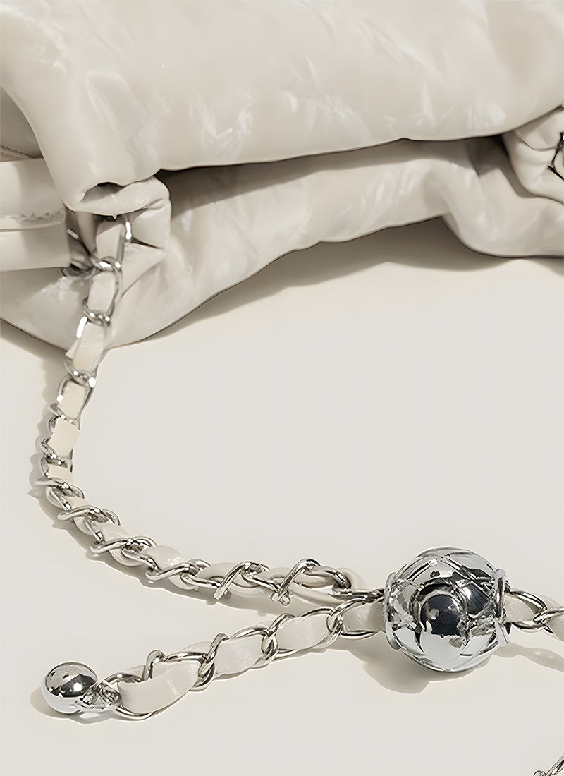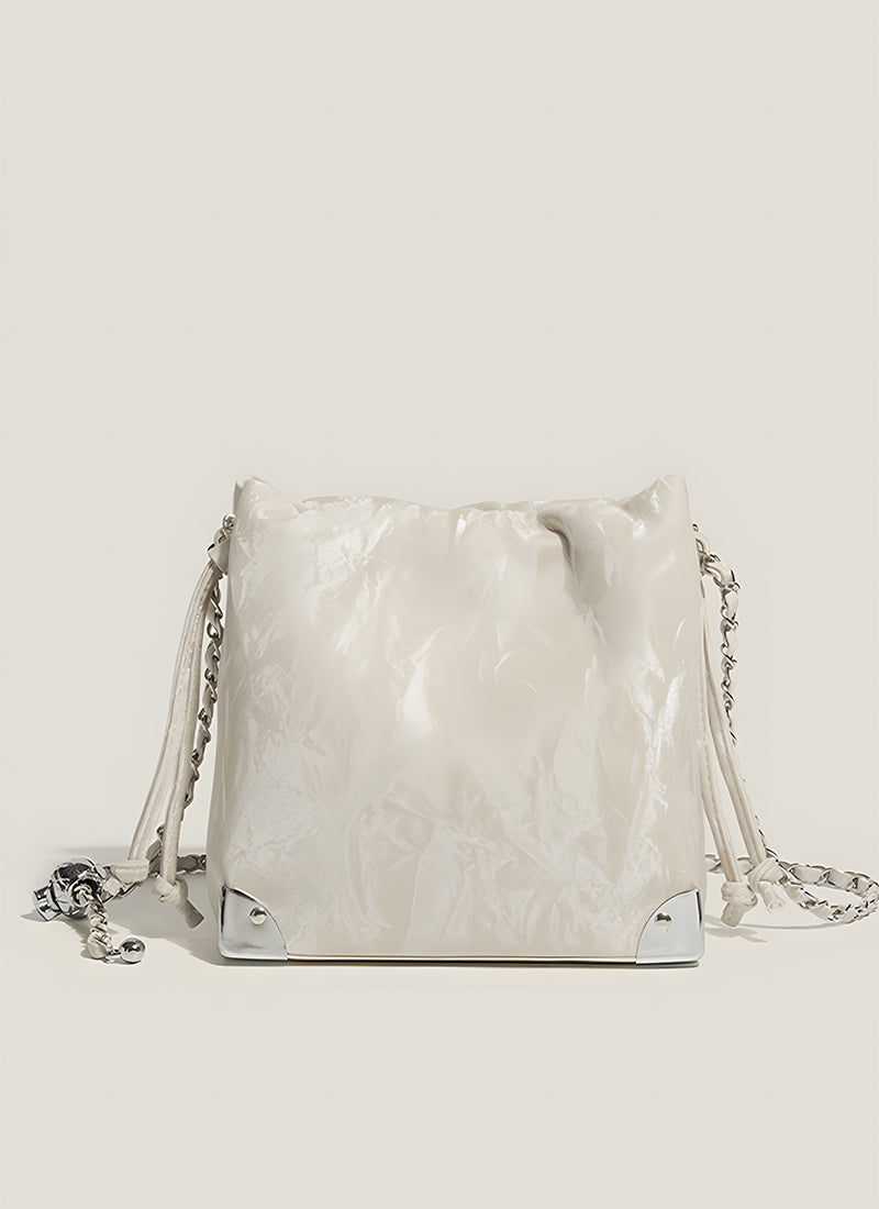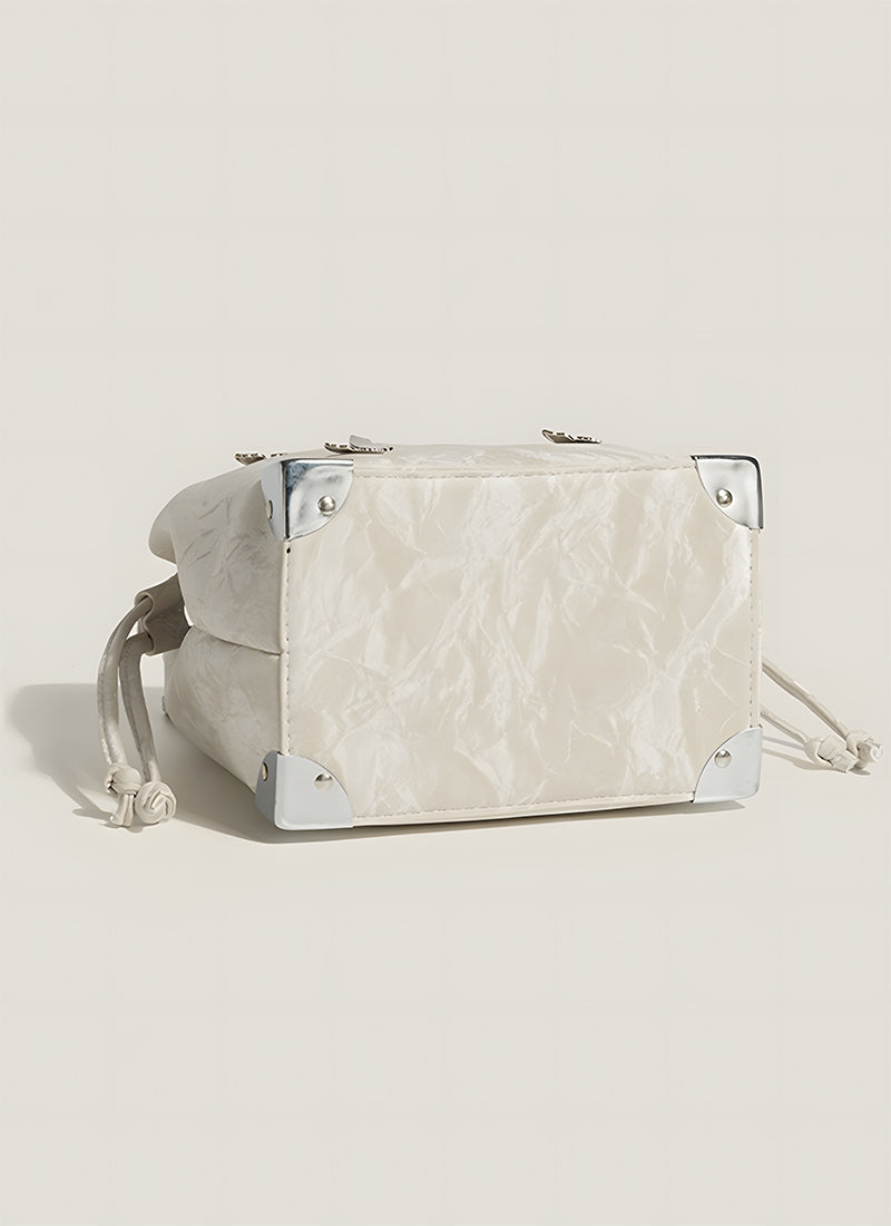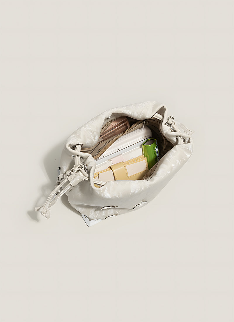 上質なPU素材に、光沢感のある金属飾りが絶妙に調和したバッグ。