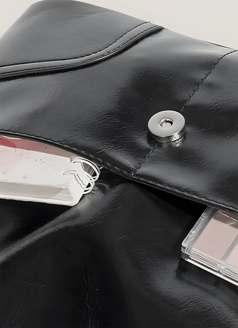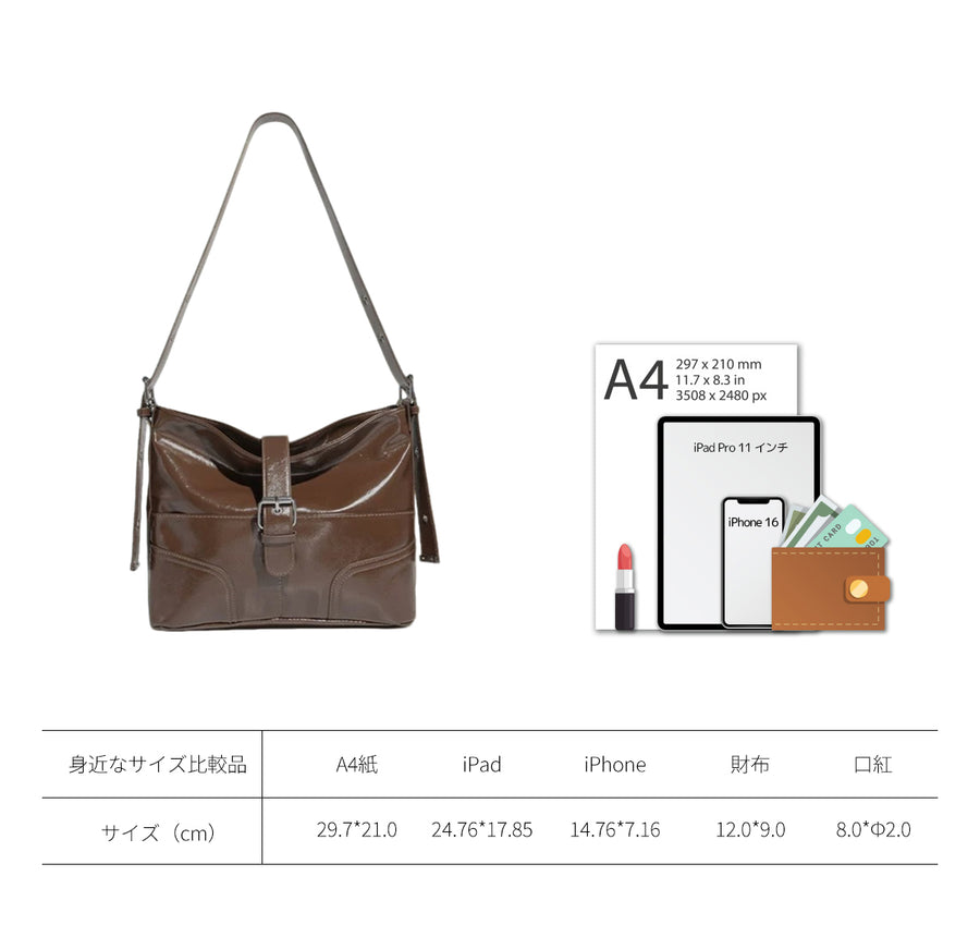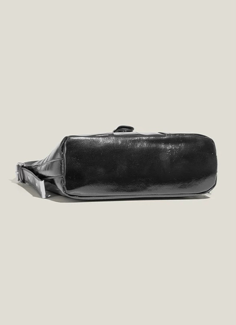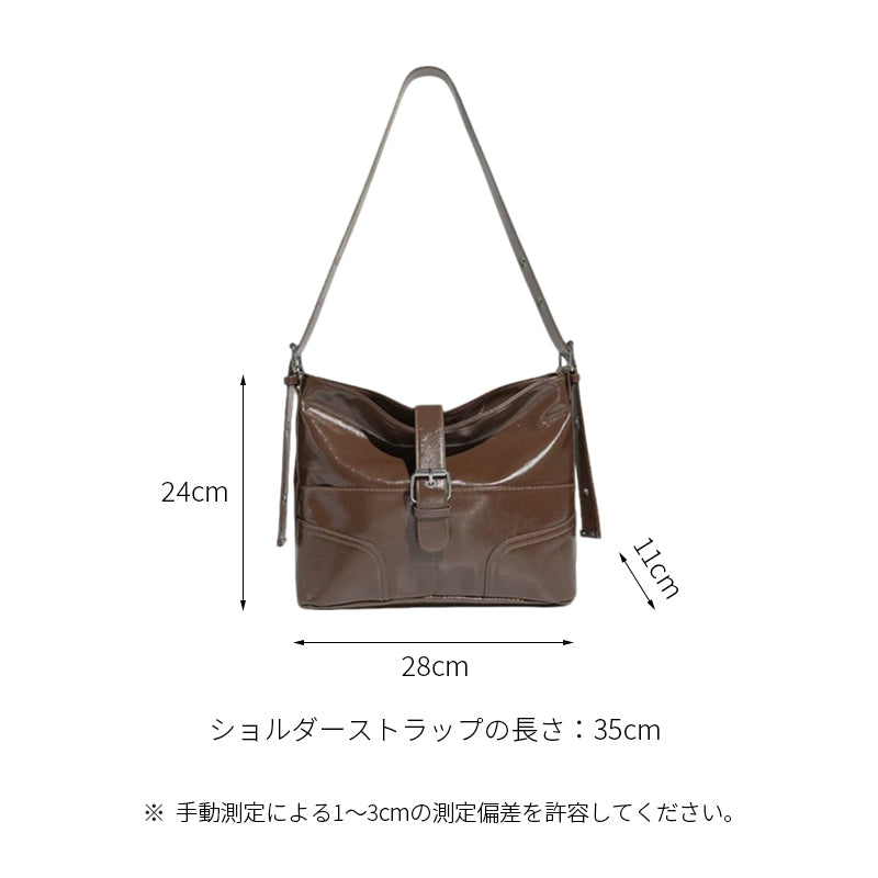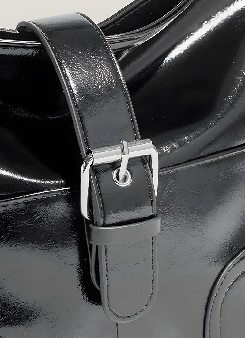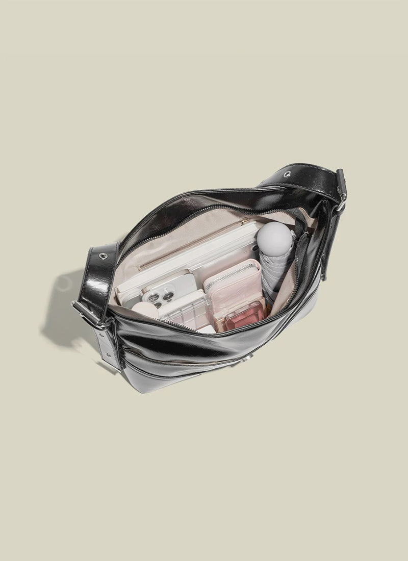 艶めく光をまとったシックな佇まいが魅力のショルダーバッグです。