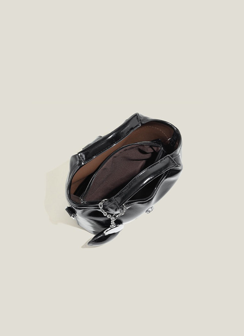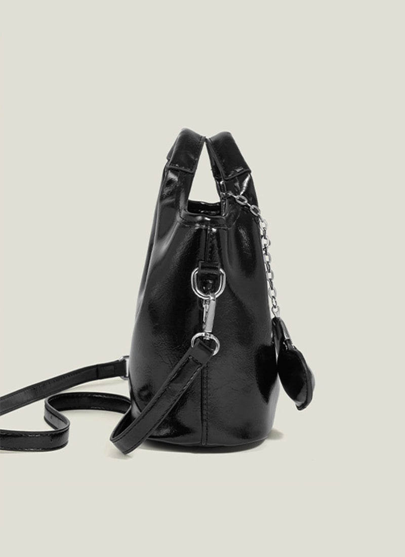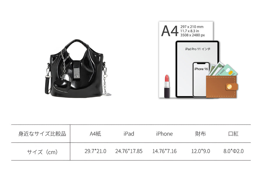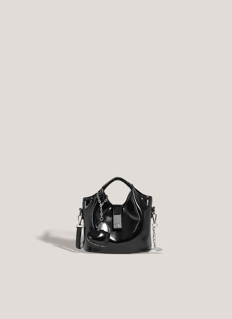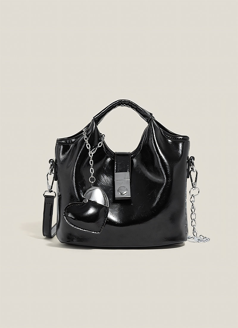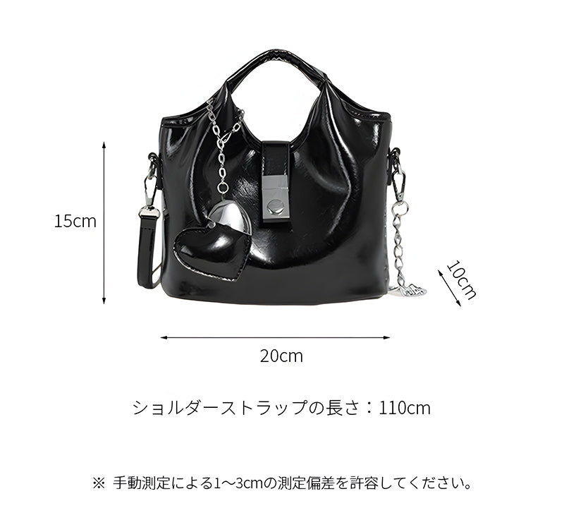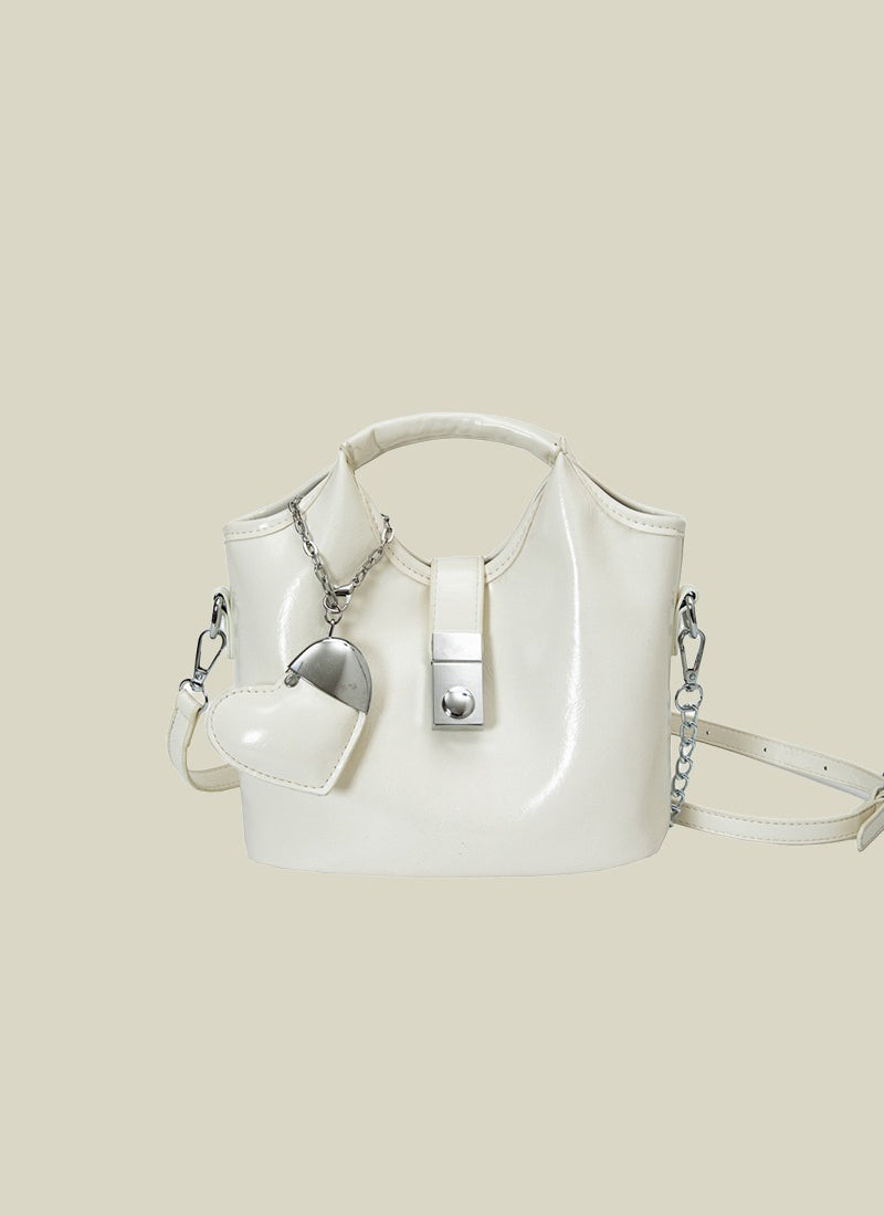 キュートなハート型のチャームがアクセントとなり、バッグに遊び心を加えます。