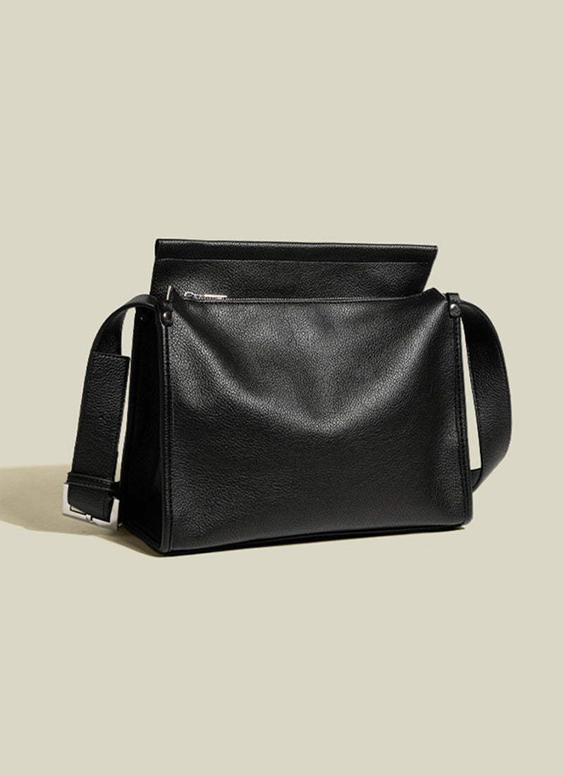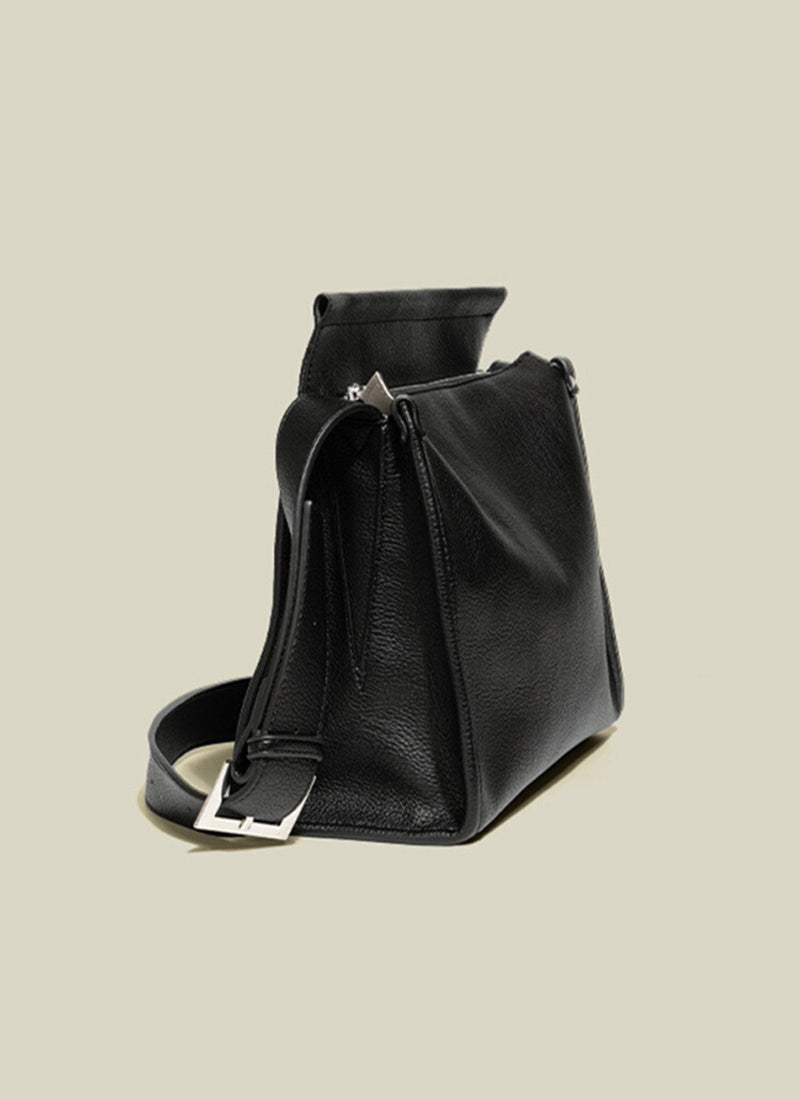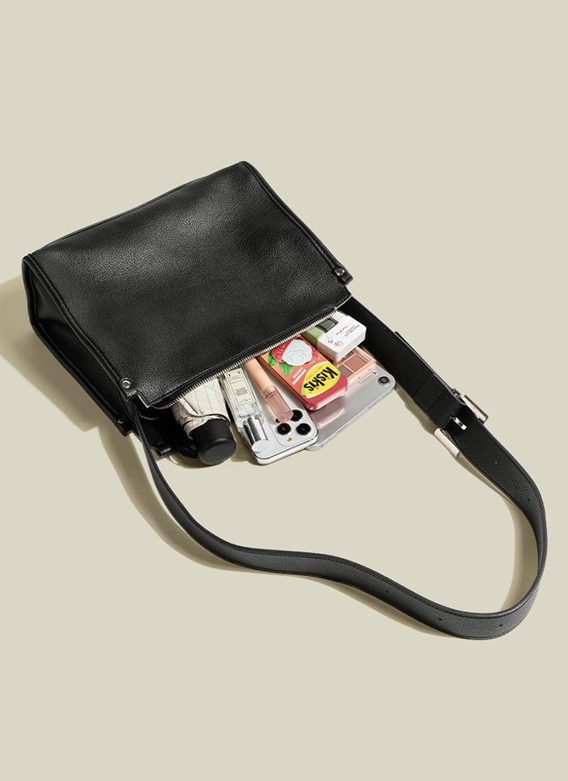 上質なPUレザーを贅沢に使用し、自然なドレープが美しく際立つショルダーバッグ。