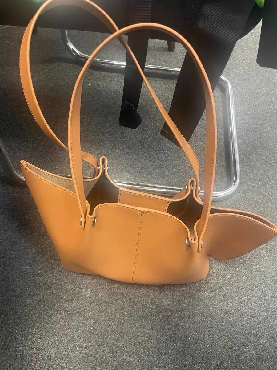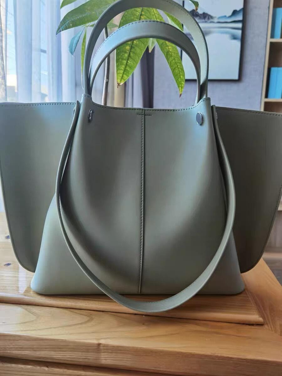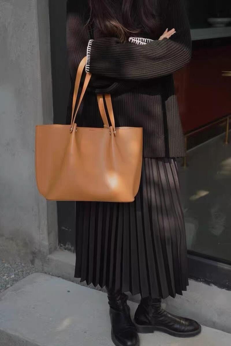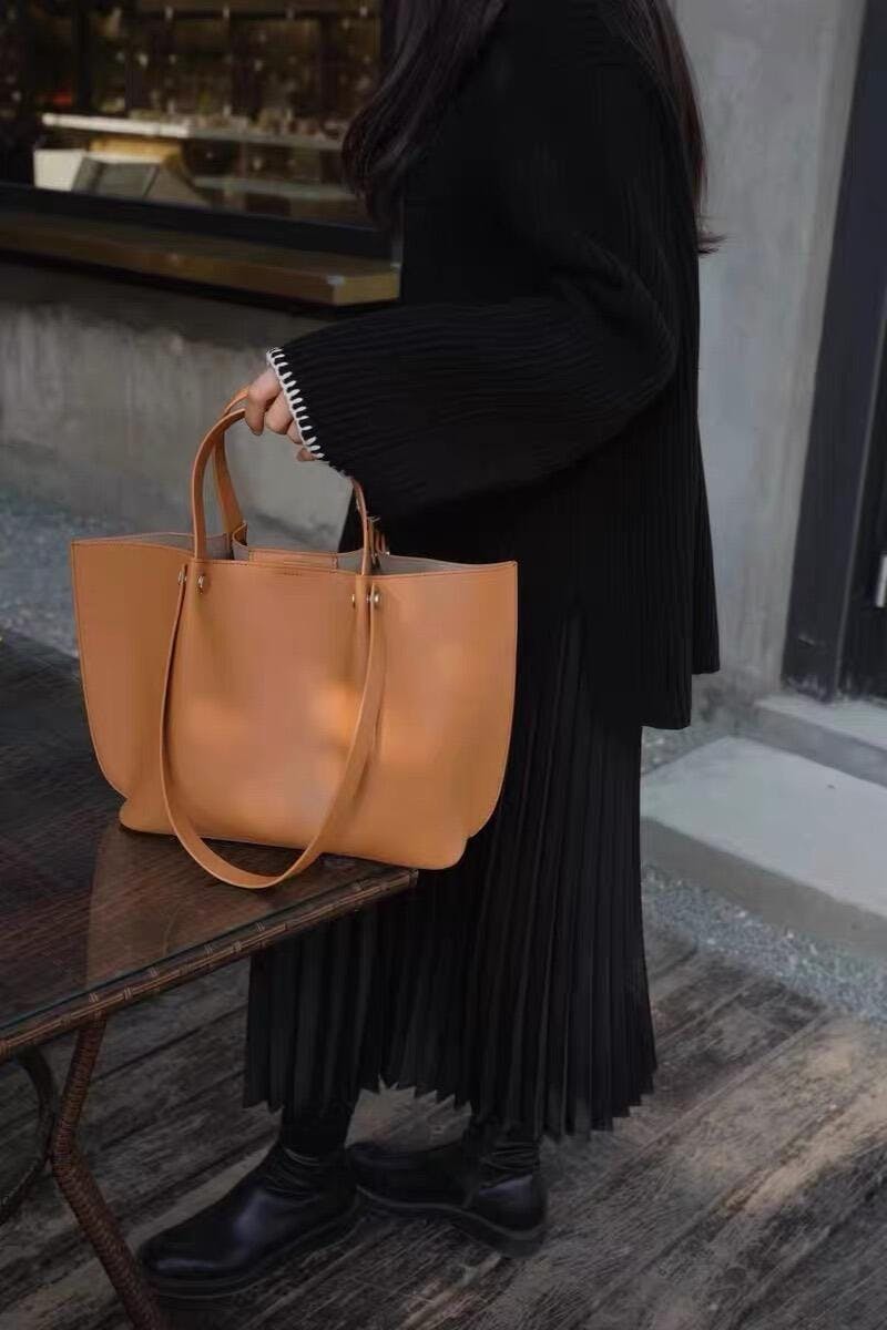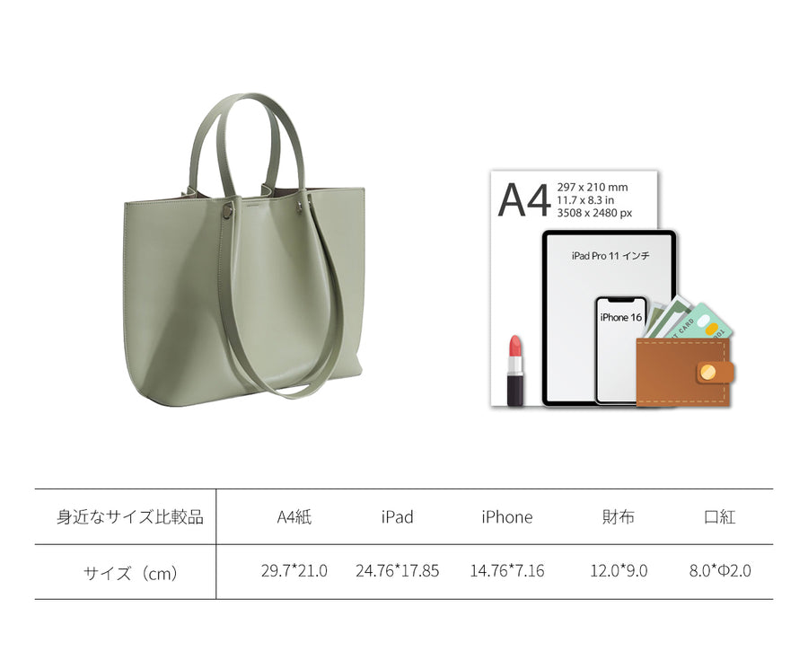 このトートバッグは、シンプルでありながらエレガントなバットウィングデザインが特徴です。