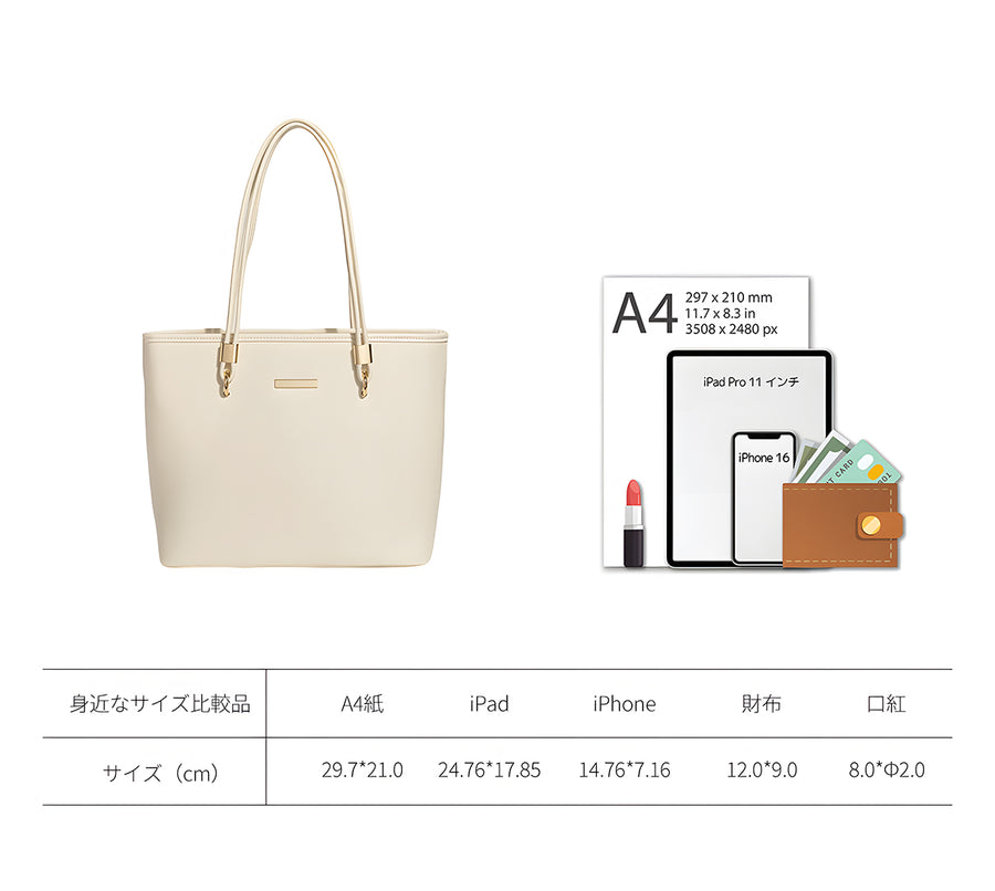 内側ポケットで必要なものを整えて持ち運べ肩に掛けたときの安定感が心を落ち着かせる。